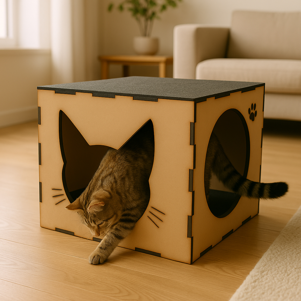 O Cubo Nicho para Gatos em MDF 6mm é o brinquedo perfeito para seu felino gastar energia, se divertir e descansar. Com carpete arranhador já incluso, ele estimula o instinto natural dos gatos de forma segura e durável.